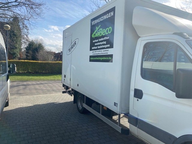 Dan kan je bij ons ook een bestelwagen huren. Met laadbak van 19m3 en laadbrug.